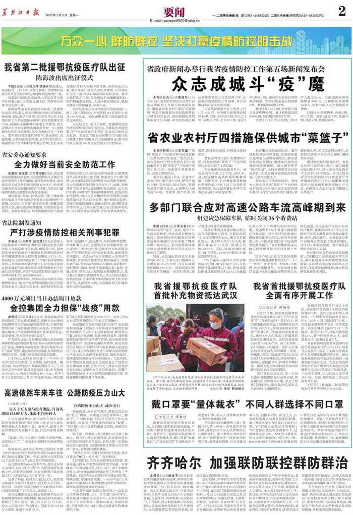 1月29日,金控集團(tuán)完成了一個(gè)4000萬元項(xiàng)目的當(dāng)日辦理、當(dāng)日完結(jié)、隔日放款。截至目前,省金控集團(tuán)所屬鑫正擔(dān)保公司已正式向有關(guān)合作銀行出具貸款保函4筆,擔(dān)保額度達(dá)9300萬元,免收擔(dān)保費(fèi)近100萬元。其中2月2日新增省建工集團(tuán)“黑龍江小湯山模式醫(yī)院”建設(shè)項(xiàng)目融資擔(dān)保2000萬元。此外,另有近10家防疫物資生產(chǎn)企業(yè)正在接觸中。